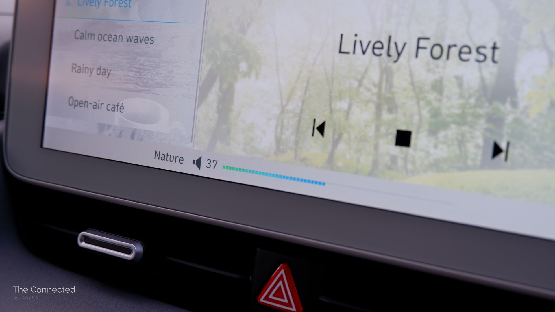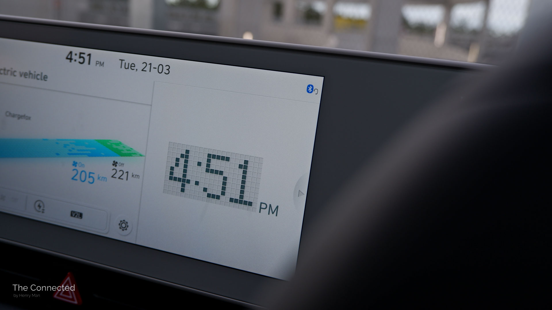 I commend Hyundai for adding more detailed bespoke touches to the user interface (not seen on the launch model, but presumably available via a dealer-installed update). The signature square pixel motifs are now appear across the clock, volume bar, battery percentage icon, and other bar elements across the system.