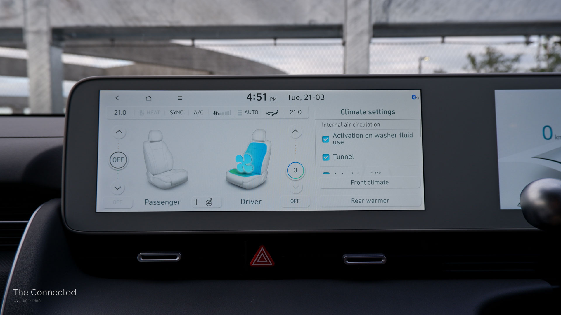 Though, you’ll need to contend with smaller touch targets, a lack of physical feedback (unlike the plusher Genesis GV60), and activating the heated/ventilation seats and heated steering wheel needs to be via the touchscreen (strangely by pressing ‘warmer’).