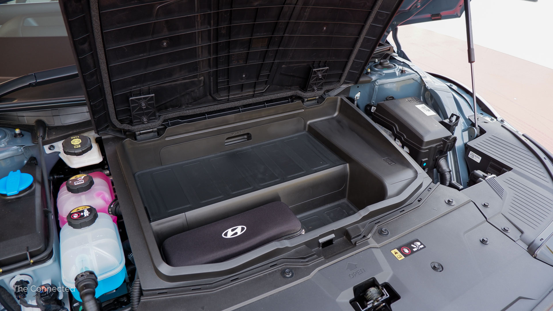 All-wheel drive Ioniq 5s feature a small 24-litre frunk, which is only useful for storing a charging cable as you’ll need to pull the release latch in order to open the gas strut bonnet, then lift up the frunk lid.