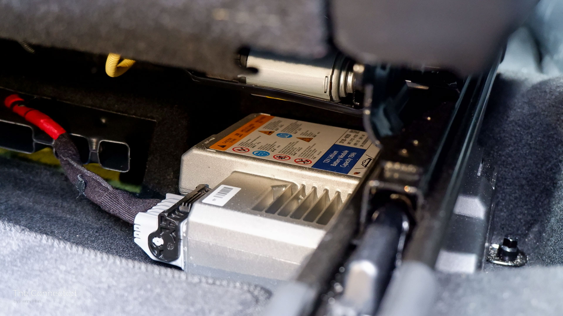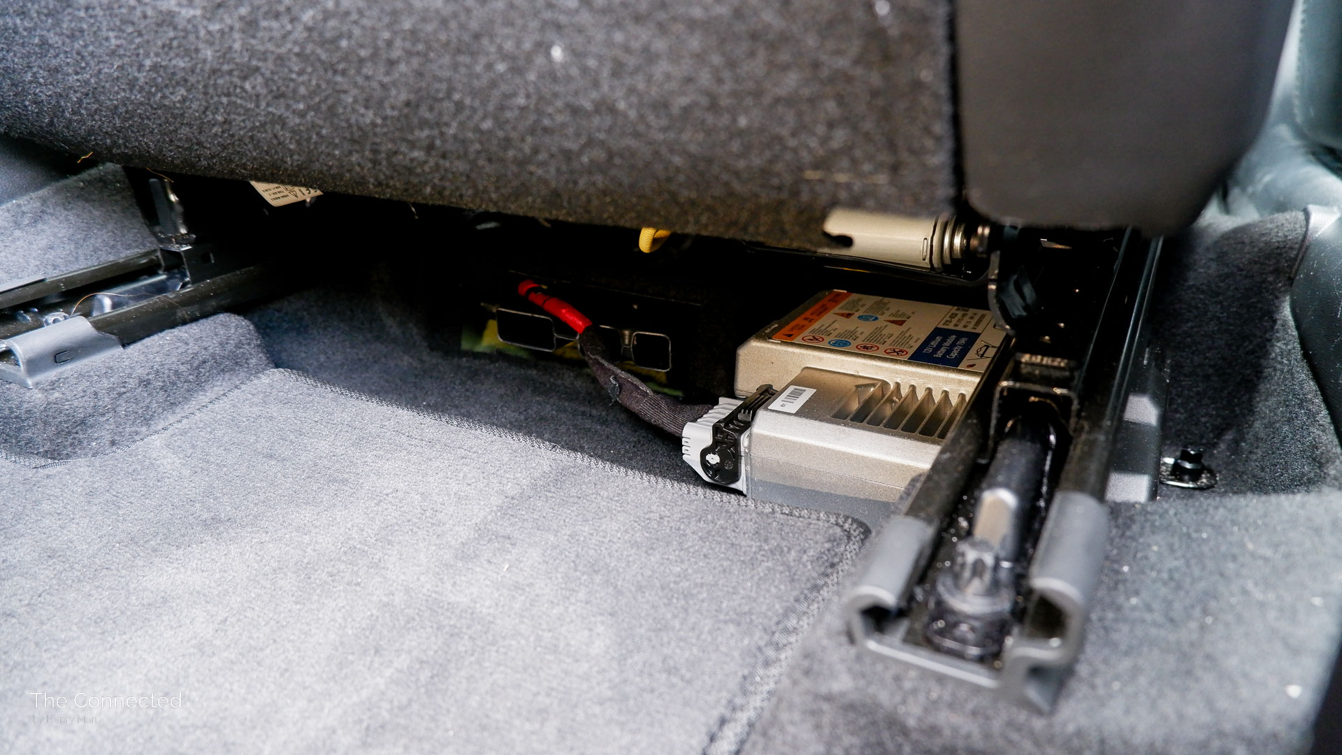 The 12-volt lithium-based electronics battery module is positioned under the driver’s seat and left exposed – seemingly a design oversight.