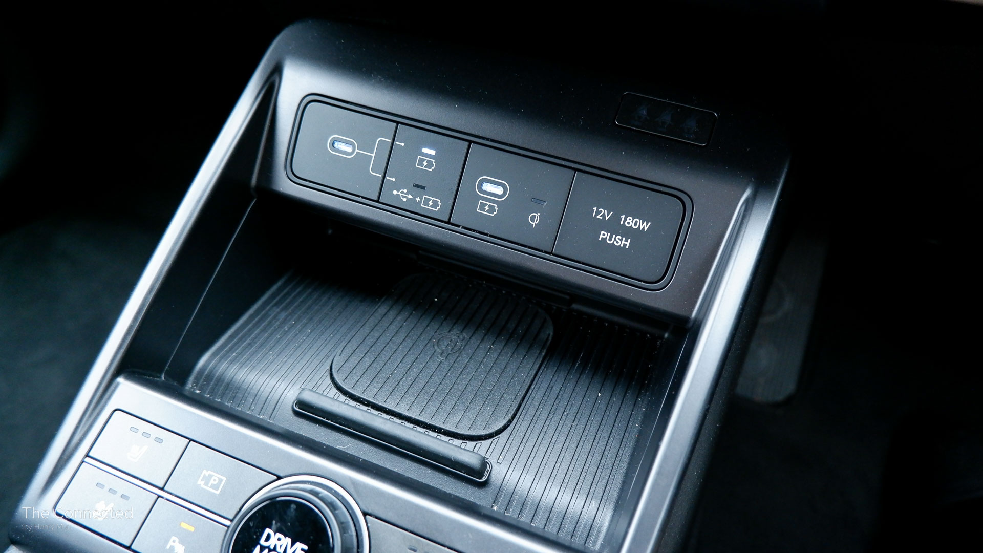 Front occupants also get two USB-C charging ports, a 12-volt socket, and an accessible Qi wireless charging pad in front.