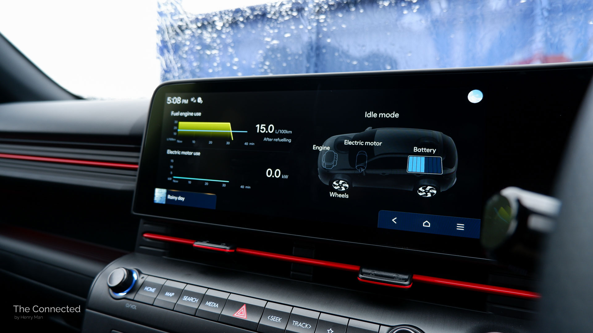 The Kona Hybrid exclusively offers a hybrid app which shows a fuel consumption and electric motor use graph, plus a real-time animation on what EV, engine or hybrid mode it’s in. This is also available on the instrument cluster.