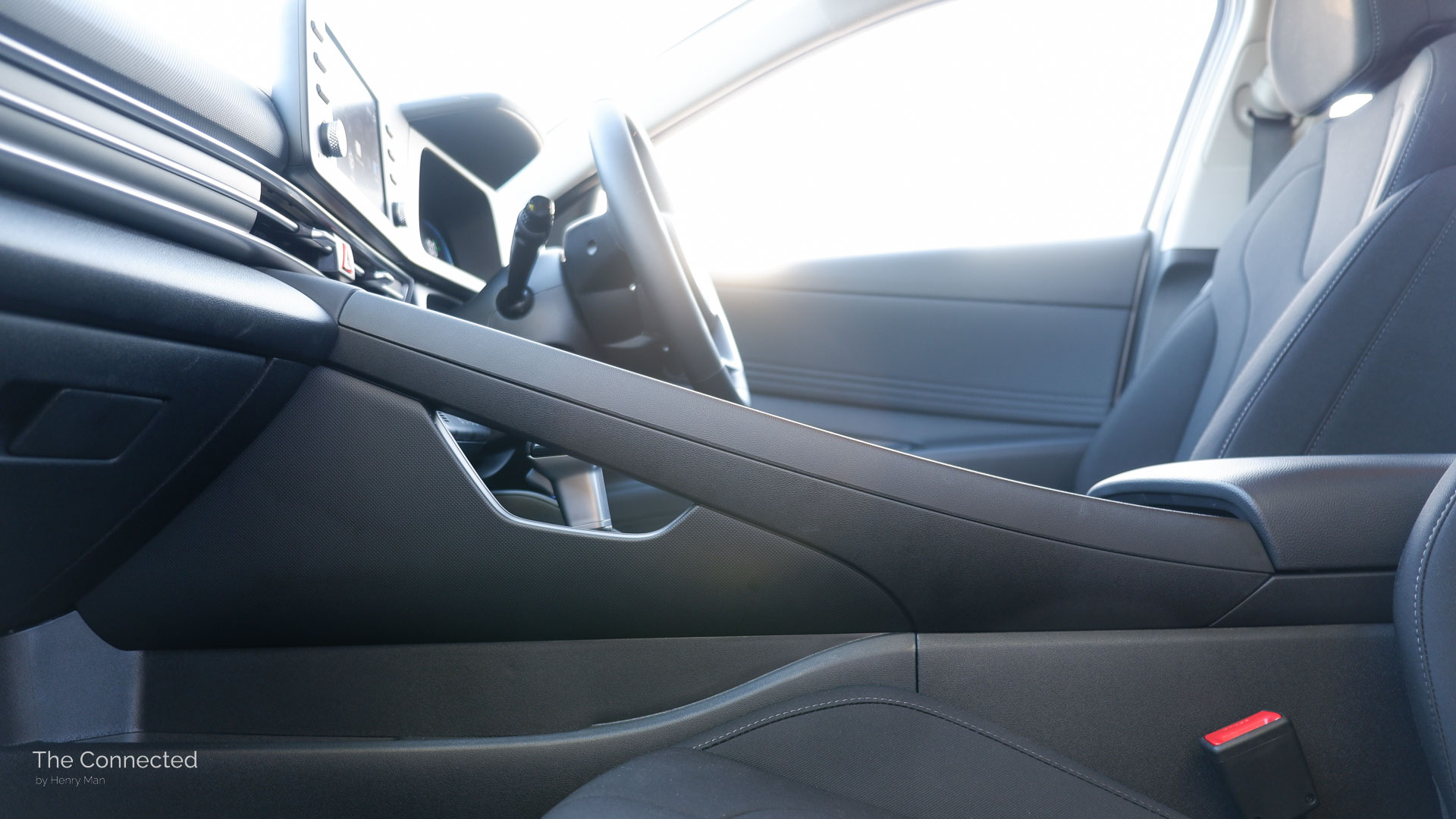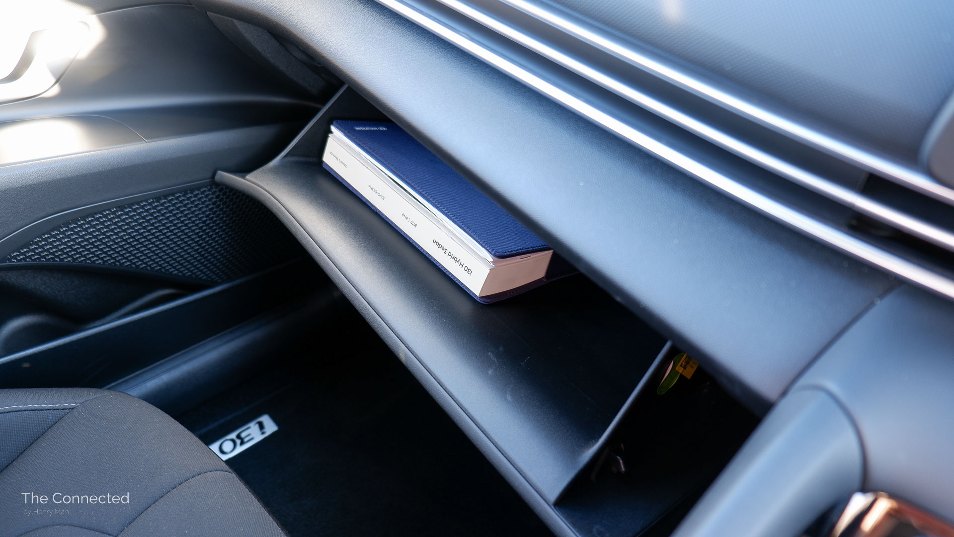 The glovebox is decently-sized, but flops down since there’s no hinge dampening and lacks illumination inside. The front passenger also peculiarly has a centre console grab handle and a small storage pocket below.