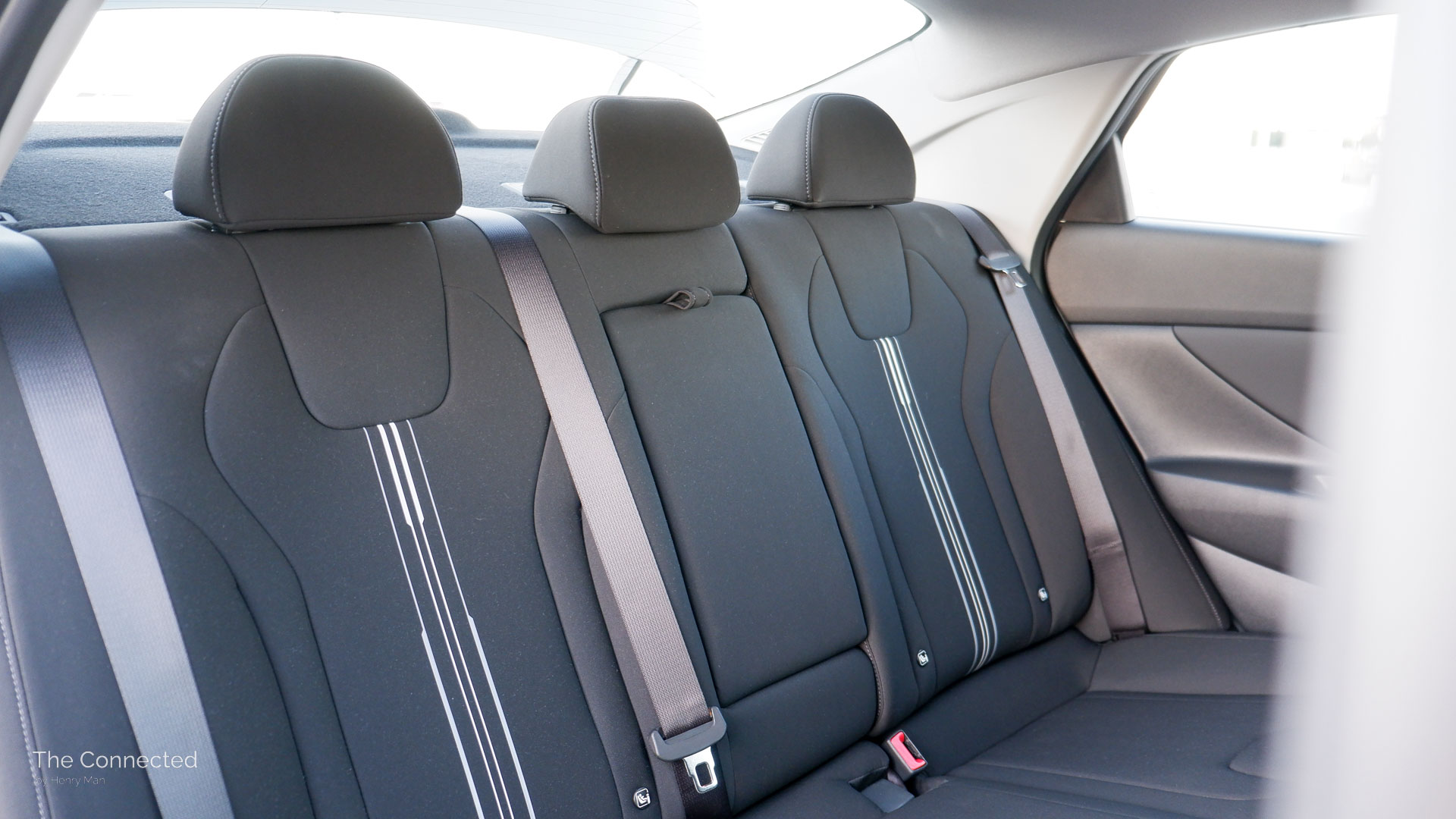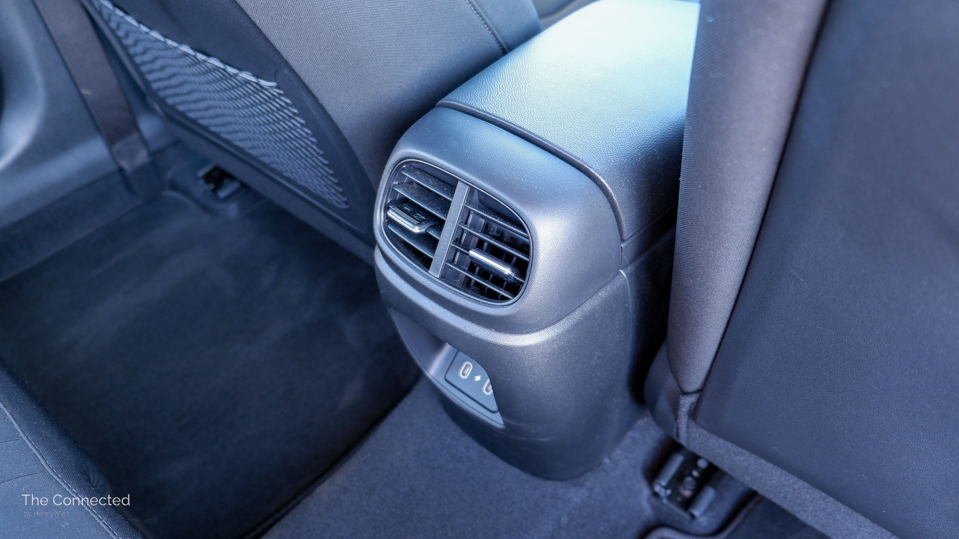 Fortunately, even the entry-level i30 Sedan Hybrid has rear air vents, two USB-C charging ports, a fold-down armrest with two cup holders, and rear halogen lights.