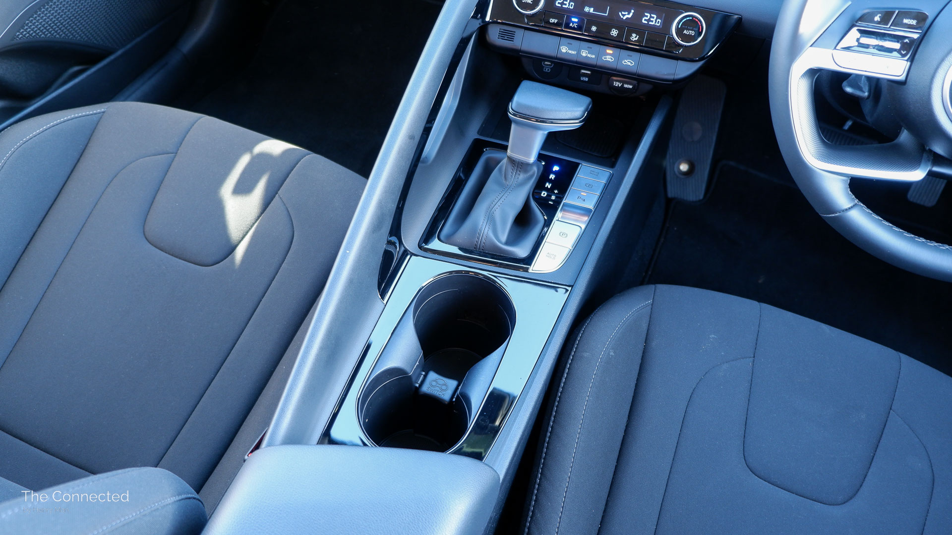 Up front, the centre console is home to a clever cup holder mechanism where you can rotate it to have an elevated bottom for shorter cups, although there aren’t any side grips.