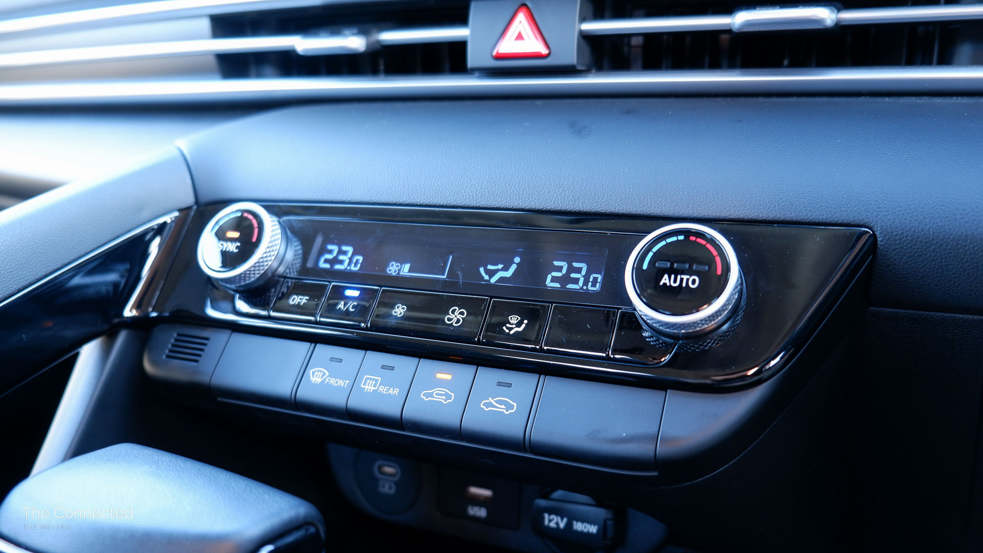 The i30 Sedan Hybrid exclusively adds automatic wipers and two-zone automatic climate control to the base model. However, it strangely doesn’t introduce Hyundai’s useful driver-only function as well.