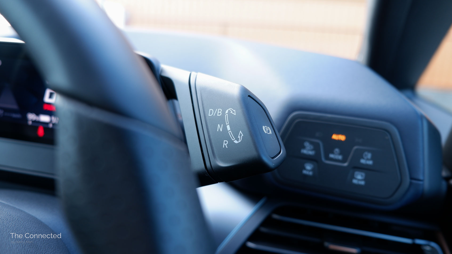 The screen moves with the steering wheel column, so it’s never blocked depending on your driving position – unlike other EVs with bigger instruments.
