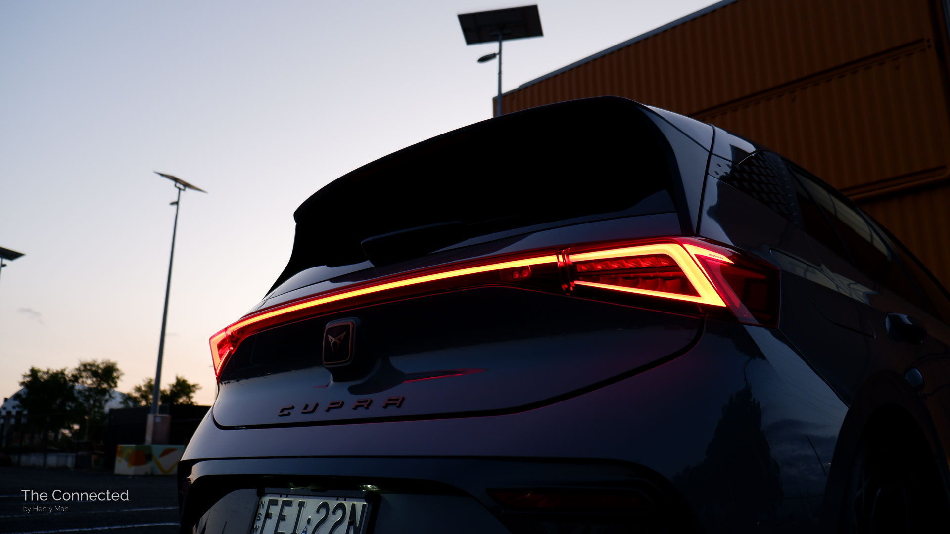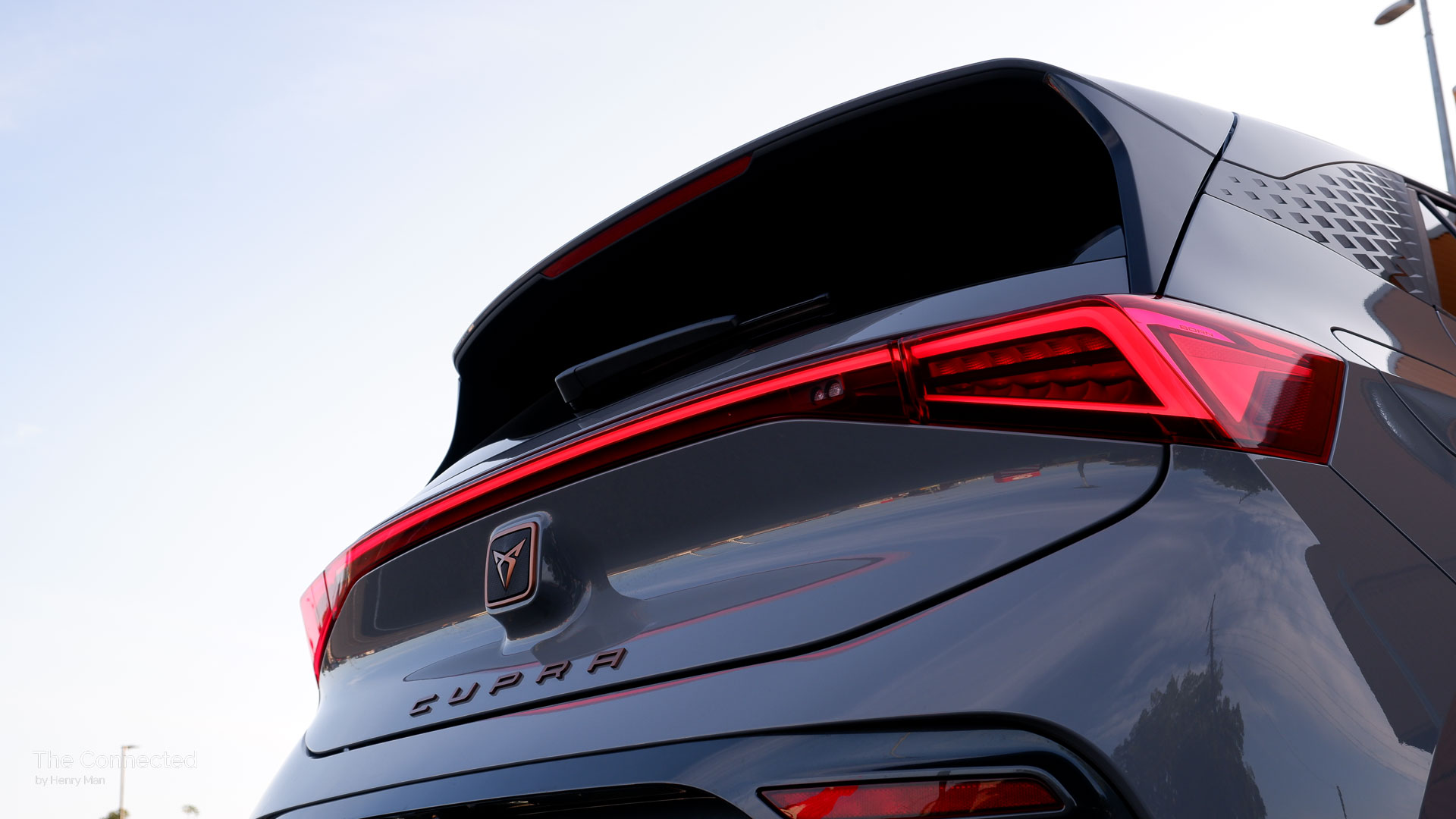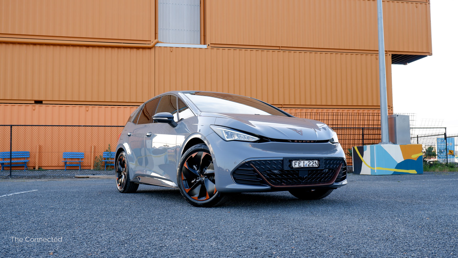 Based on the Modular Electric Toolkit (MEB) platform, the German-made Cupra Born is essentially a more aggressive Volkswagen ID.3 with copper highlights, distinct triangular daytime running lights, and a thin LED rear light strip with a sporty rear bumper and side skirts finished in Quasar Grey.