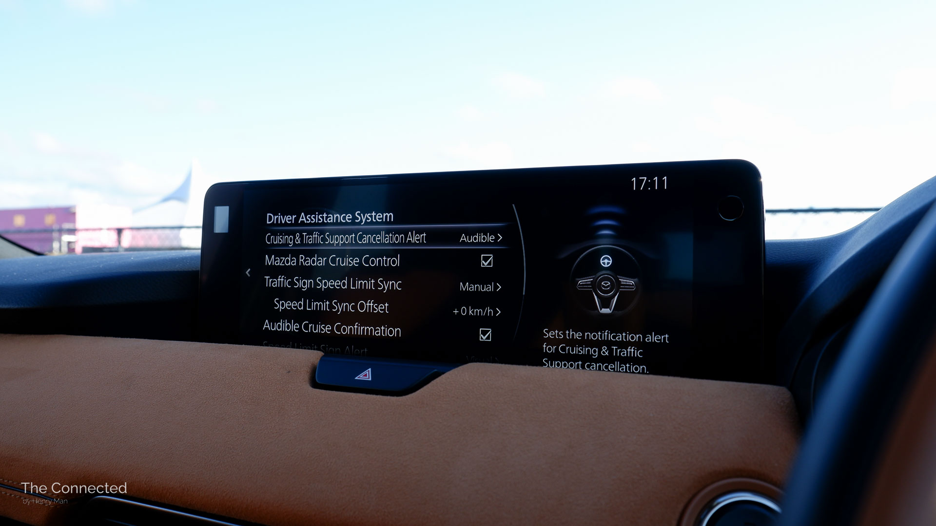 Mazda’s lane-centring assist system is likewise very smooth and allows the driver to take over, with a single button press on the steering wheel easily disabling the steering assistance. Lane-keeping is also refined and non-intrusive.