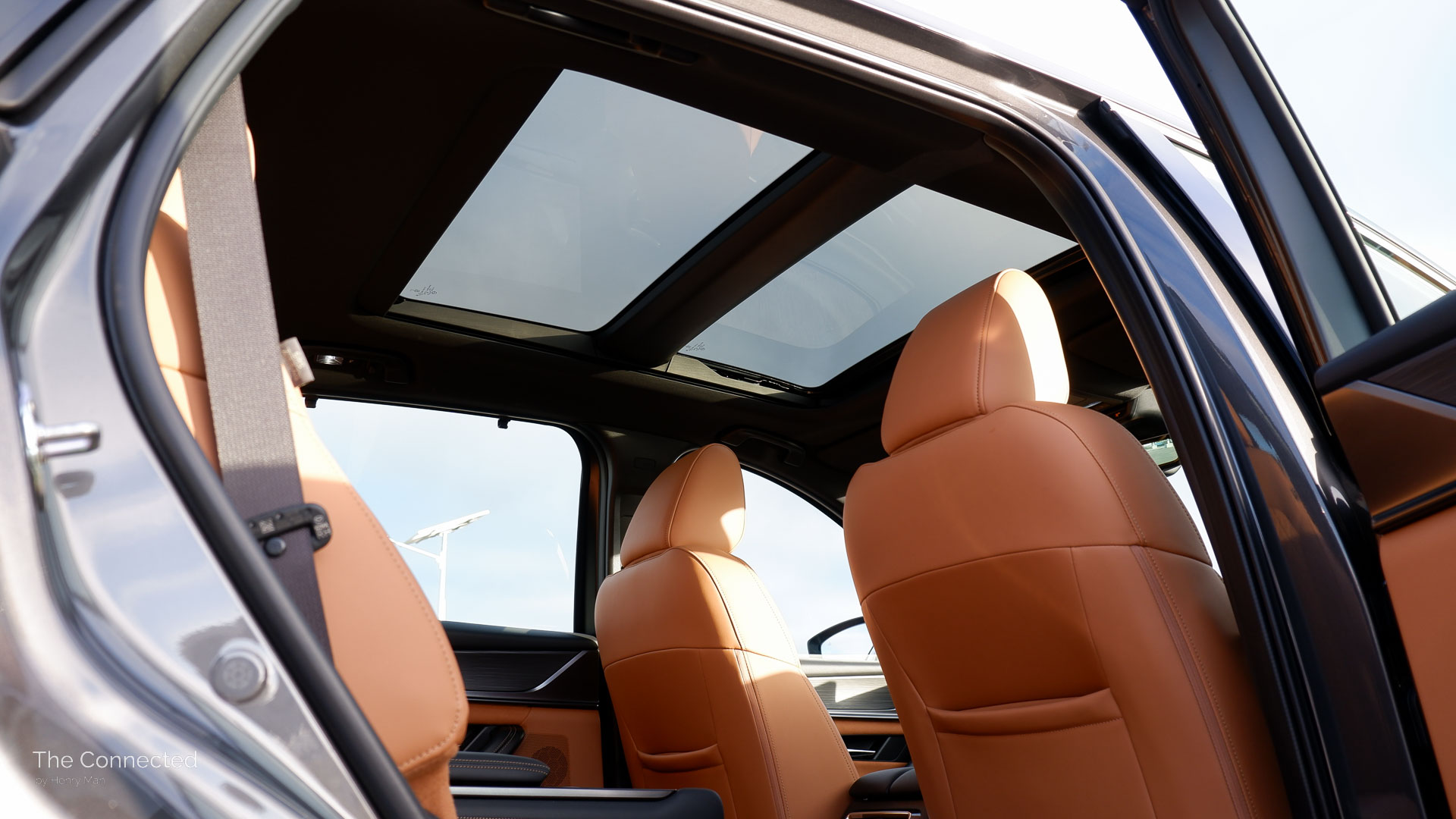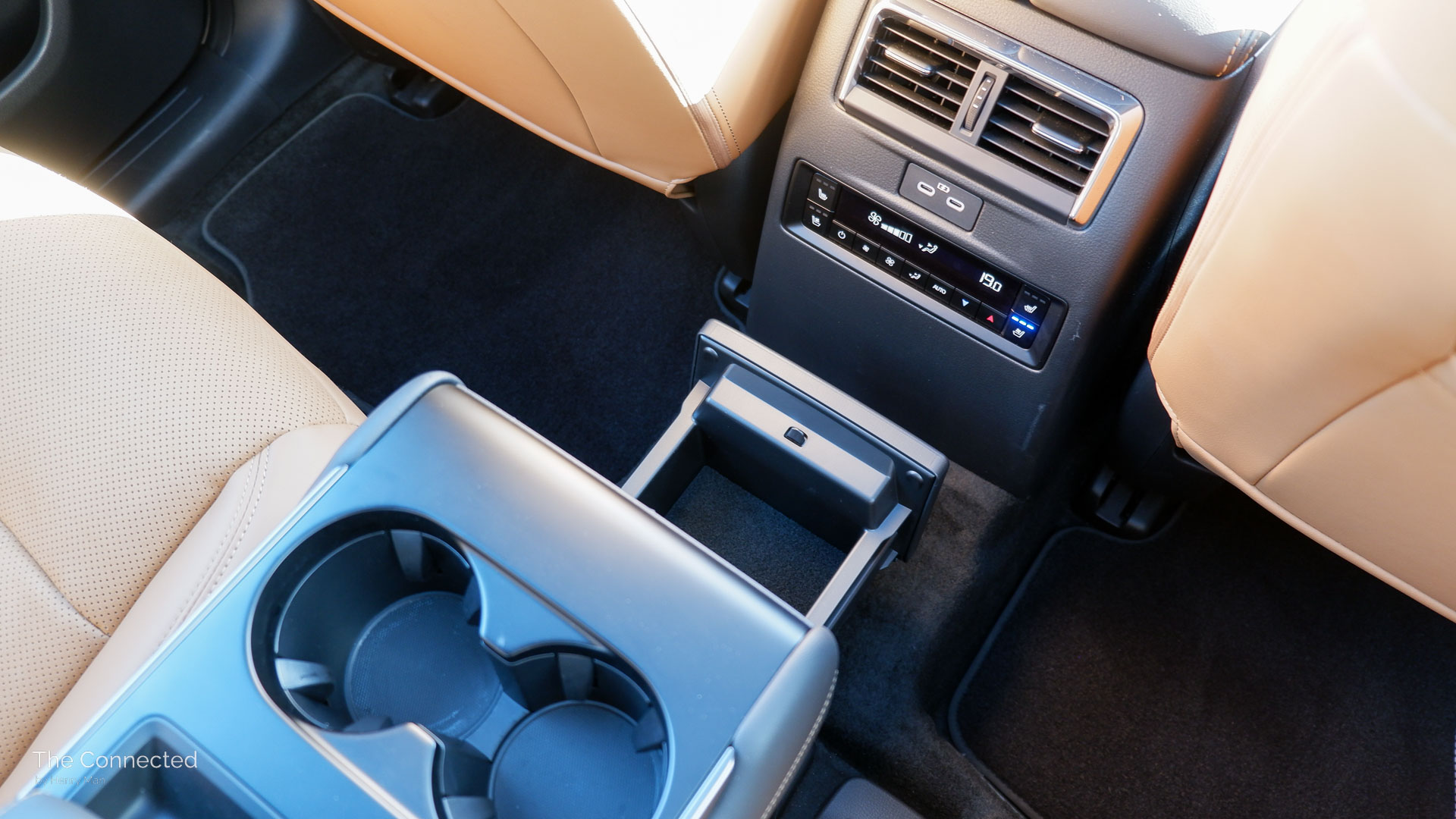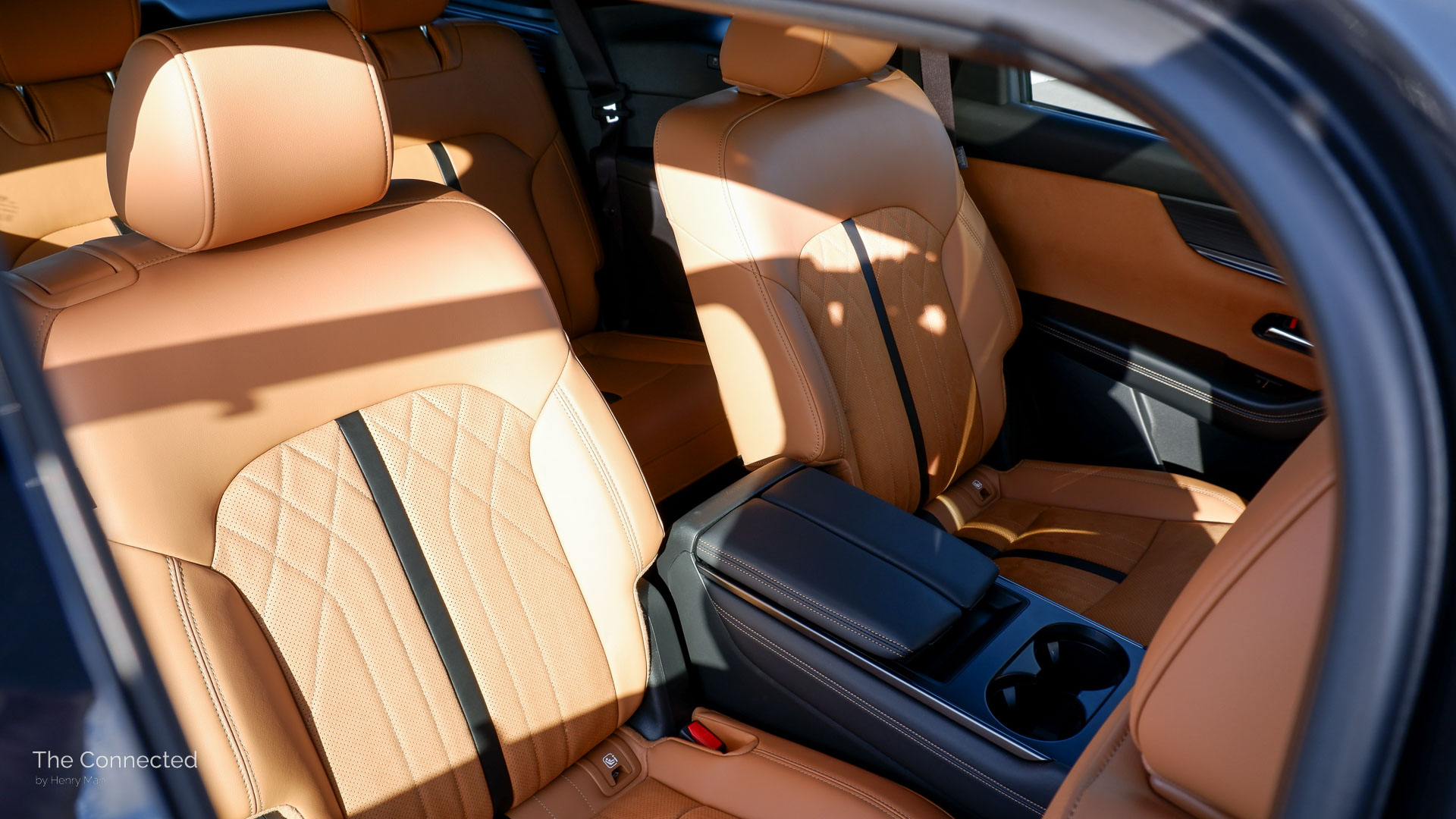 Meanwhile, the second row provides plenty of legroom and headroom with access to the third-zone climate controls, two USB-C charge ports, a view of the average-sized panoramic sunroof, and built-in window sunblinds.
