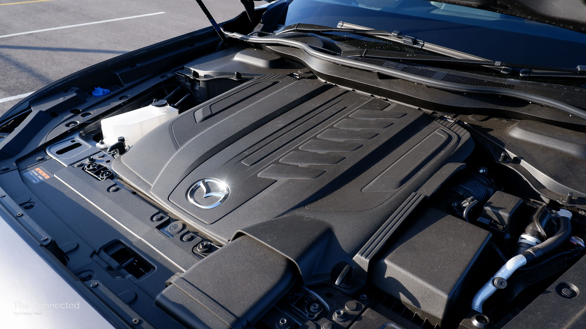 Defying trends of downsizing engines, Mazda’s new 3.3-litre turbocharged inline six-cylinder petrol engine produces up to 254kW of power and 500Nm of torque. An eight-speed single wet clutch automatic transmission drives all four wheels but with a rear-wheel-drive bias.
