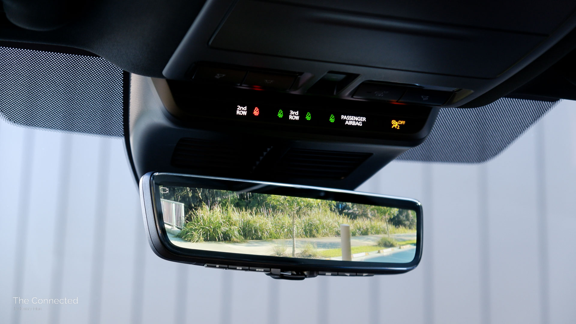 The CX-90 provides good all-round visibility, although the optional digital rear-view mirror camera is worth the extra $2568 as using the third row will completely block the rear window with the tall headrests.