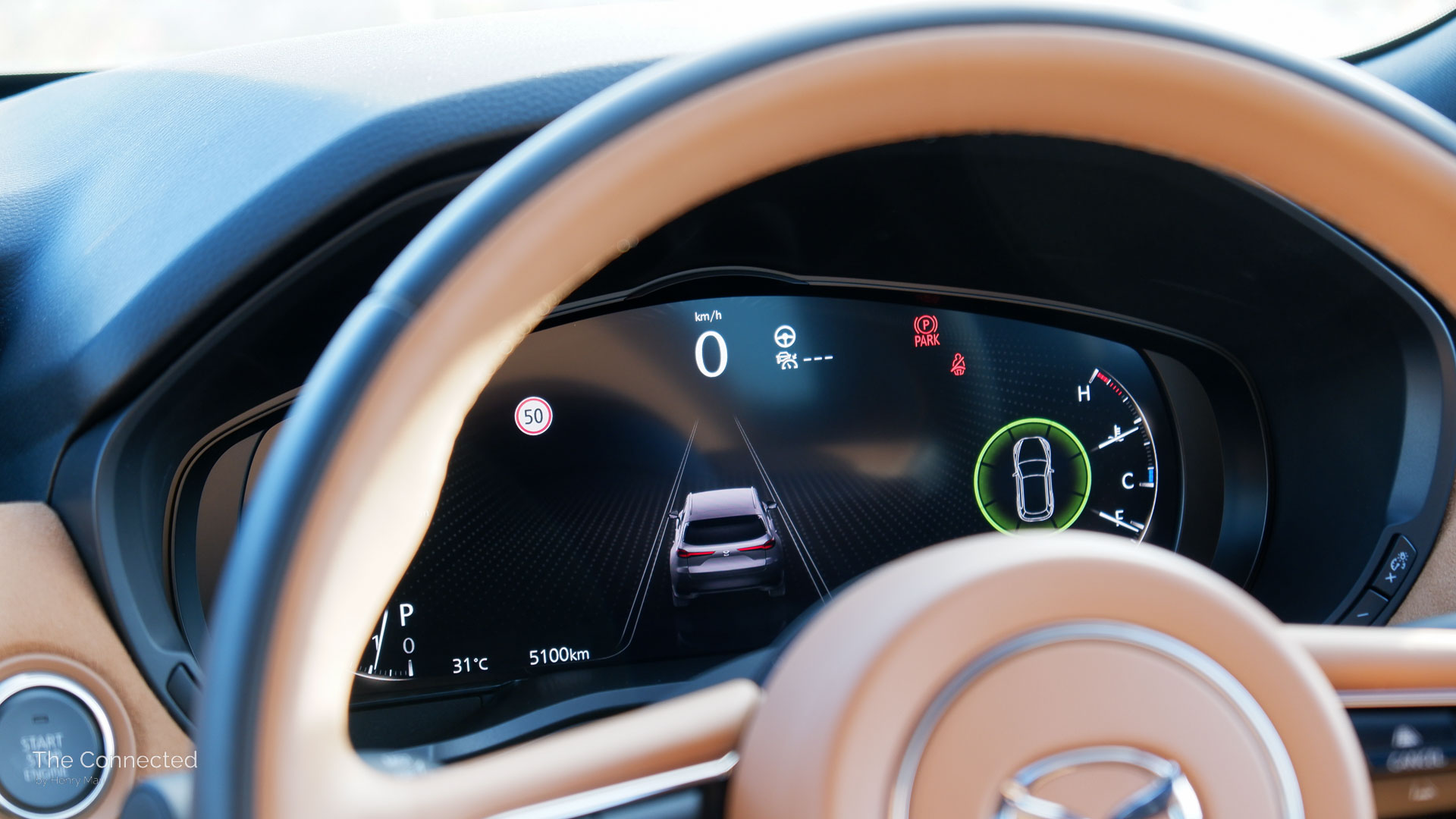 Meanwhile, the 12.3-inch driver instrument display is equally high resolution with simple analogue and digital dial themes, with the latter enabled when adaptive cruise control is toggled. It’s minimalistic with not much customisation, but the welcome screen and drive mode animations are pretty cool – and match the vehicle colour (bonus points for Mazda).