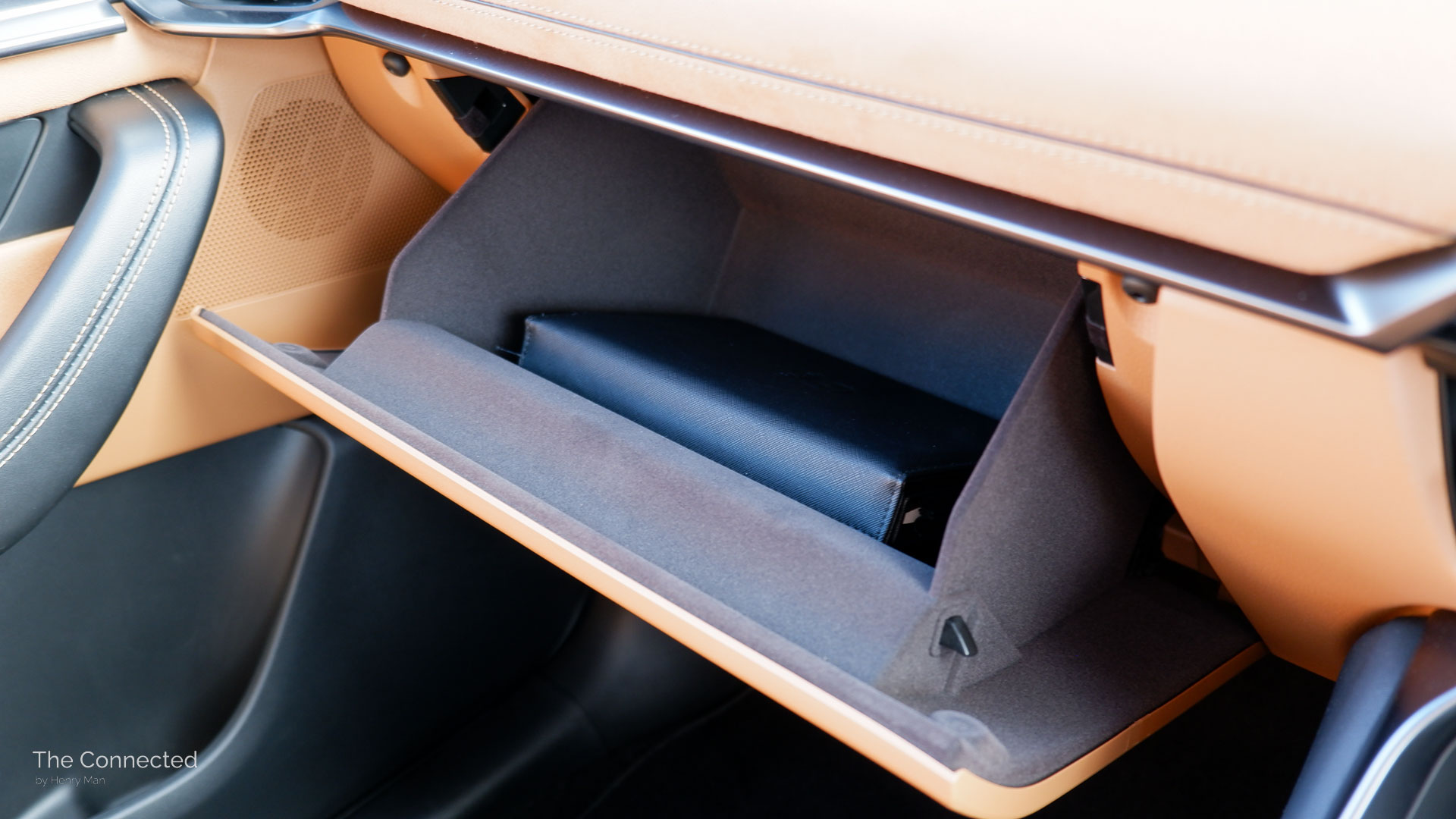 The door pockets are large and can fit two bottles, there is a quirky tiny coin slot next to the driver, the glovebox is well-sized and felt-lined with LED illumination (only when the headlights are on), and a sunglasses holder above.