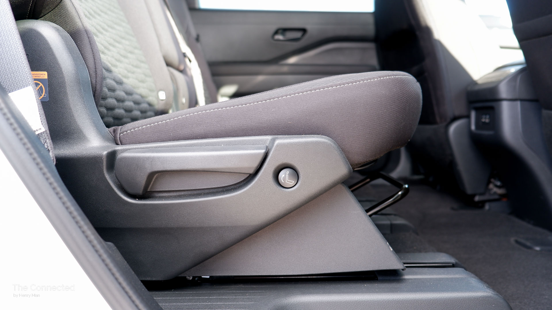 Getting in the third row is relatively easy with a one-touch button that springs forward the second row and a plastic step, although there aren’t any grab handles.