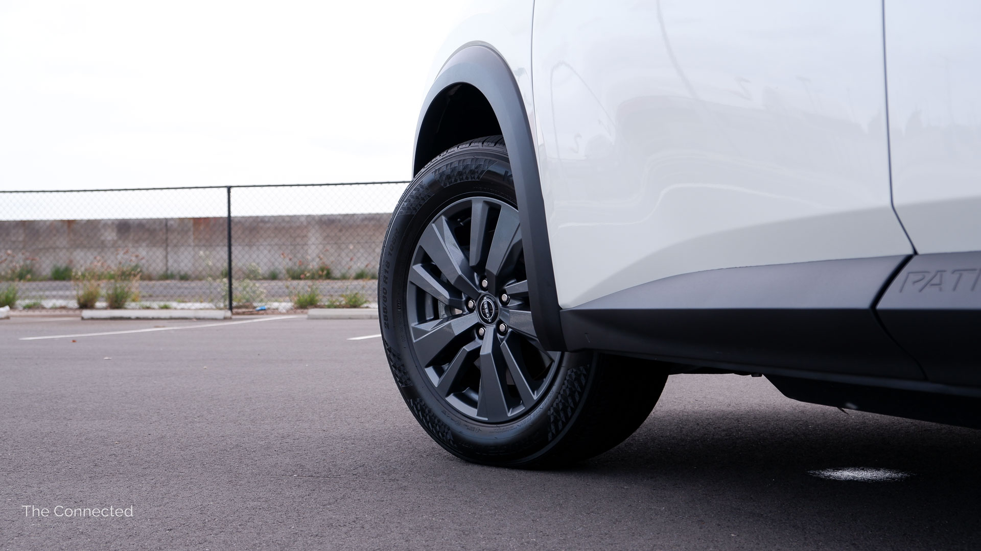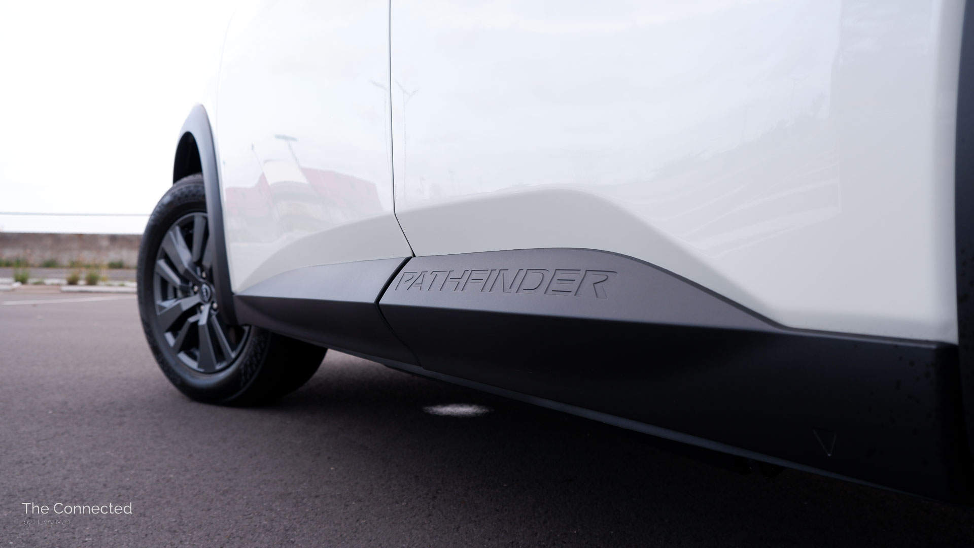 The Pathfinder’s American origins are clear, with a butch V-shaped grille, C-pillar that effectively breaks up the side profile, and big Pathfinder lettering at the tailgate.