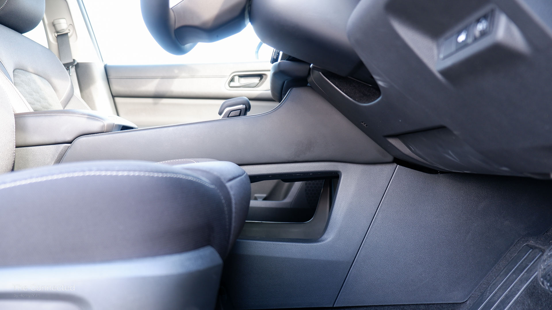 The glovebox is also well-sized but lacks illumination and, while a rubberised open shelf is on offer, it is narrow and slanted towards the passenger so items will likely fall out while driving.