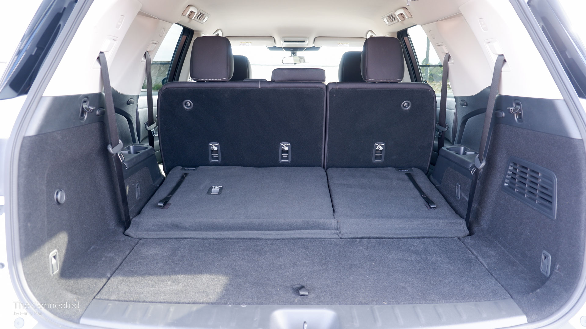 Folding the third row requires pulling two tabs – at the headrest and backrest – and opens up the cargo capacity to 554 litres.