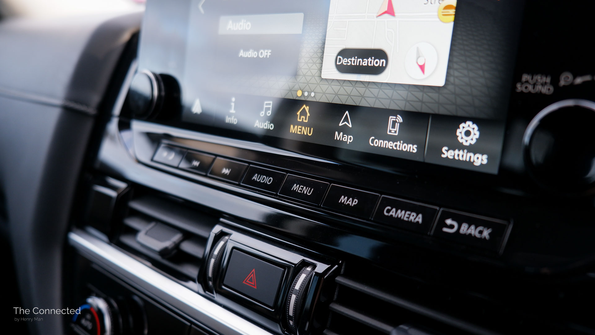 While Nissan’s built-in operating system is functional, the user interface has a basic and dated design with noticeable lag when swiping between the home screen pages.