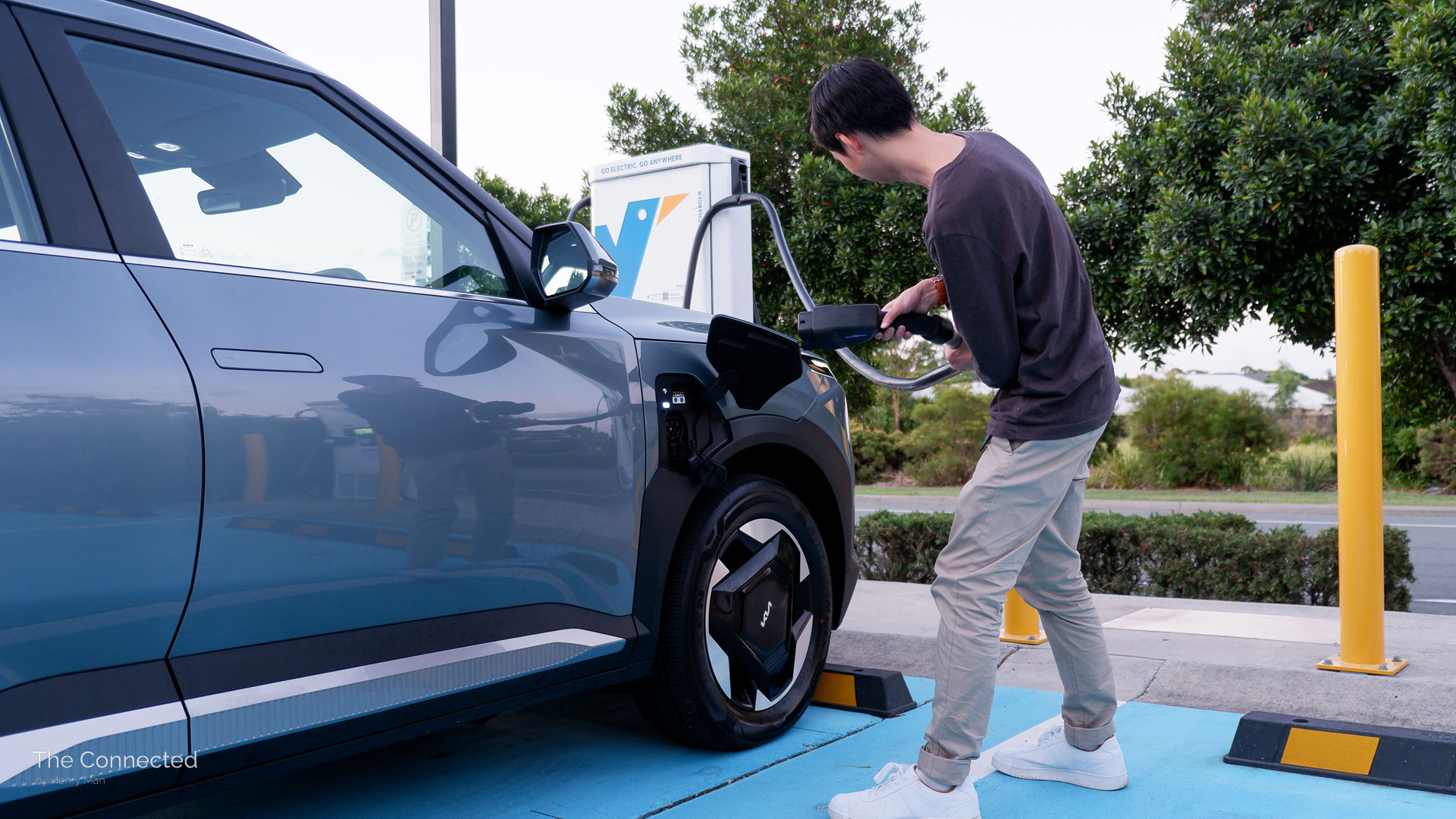 Unfortunately, the Kia EV5’s Type 2 CCS charging port is located at the front-right quarter of the vehicle beside the wheel arches, with an electrically-operated lid.