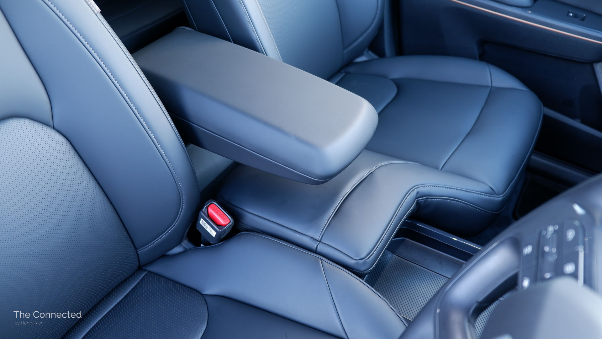 Furthermore, the front row is rather quirky with the passenger seat extending into the middle. You’ll need to rely on the small pouch since the sizable centre armrest doesn’t offer any private storage space.