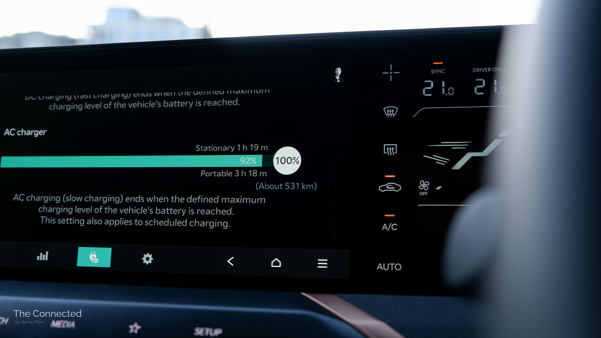 It’s an awkward and tedious task given the front bonnet gets in the way of the cable (potentially scratching the bodywork) and the closely-attached plastic AC and DC caps can obstruct the ability to plug in.