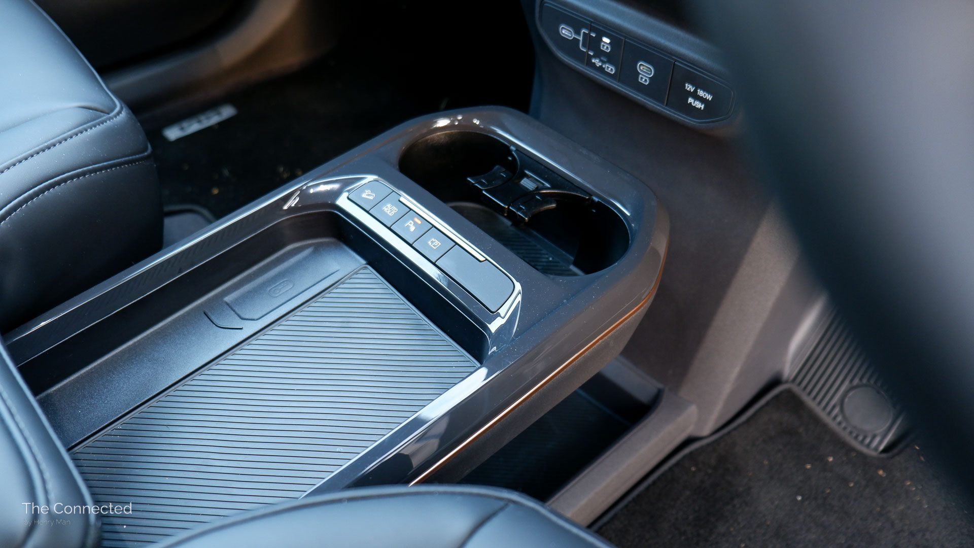 There’s an open two-level centre console storage tray with two gripped cup holders in front, but it’s rather low so the space underneath is an even harder reach with no light illuminating it at night.