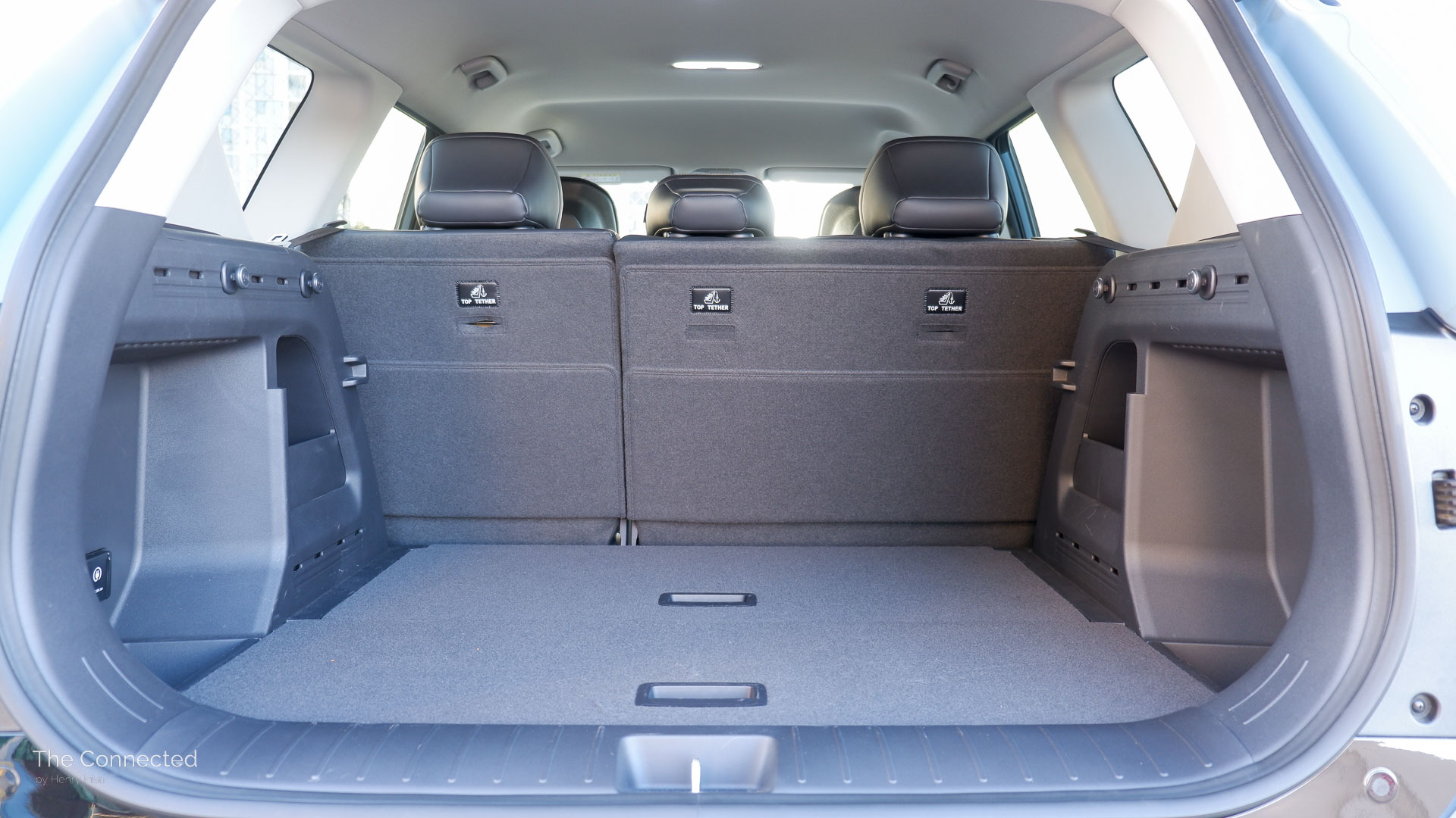 The 513-litre boot capacity is deep with no loading lip, an interior vehicle-to-load (V2L) power plug, and LED illumination from above.