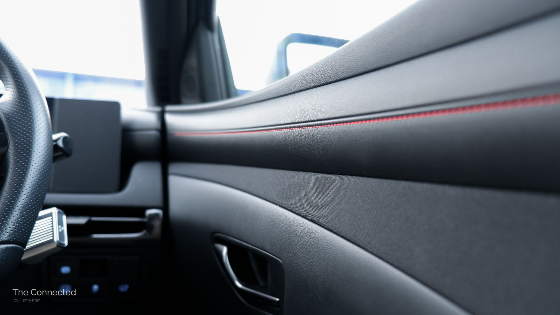 The optional N Line package adds an even sportier touch with different gloss black bumpers, complex-looking 19-inch alloys, matte black badges, and black leather and suede seats with red stitching and piping.