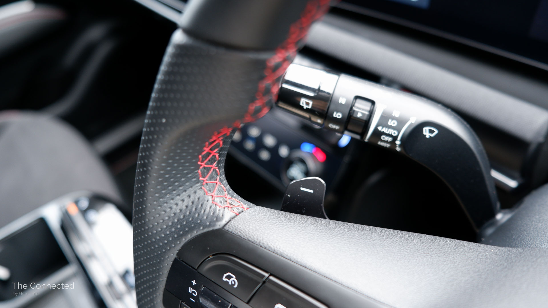 Three regenerative braking settings and an automatic function are easily toggled via the steering wheel paddle shifters, which effectively slows down the Hyundai hybrid SUV without touching the brake pedal.