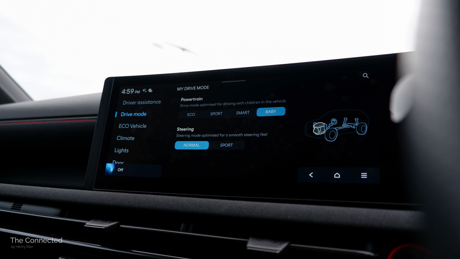 The new Tucson Hybrid debuts Baby Mode (accessible via the custom MY driving mode) which limits the acceleration and torque response.