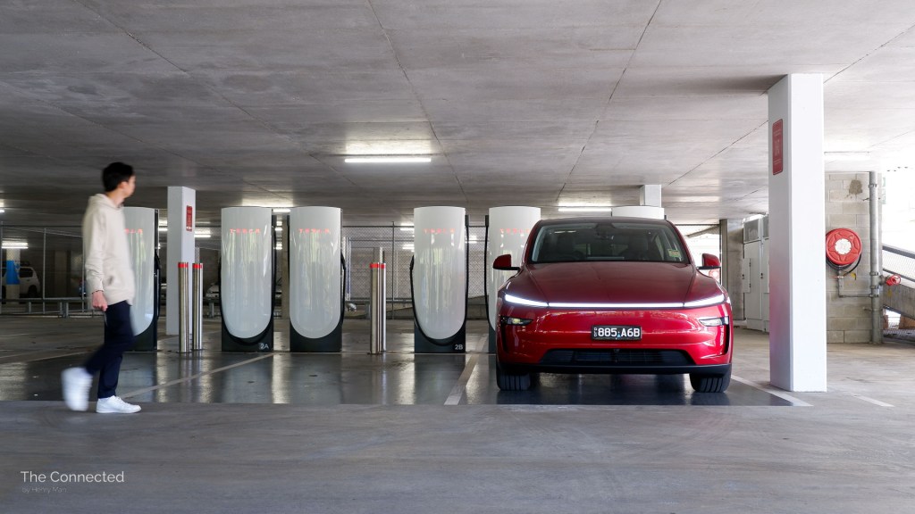 However, it’s not perfect. Tesla Supercharging bays can be very tight in our experience – especially when older V3 stalls are placed on the marked lines – and you may not be able to open the rear doors when plugged in.