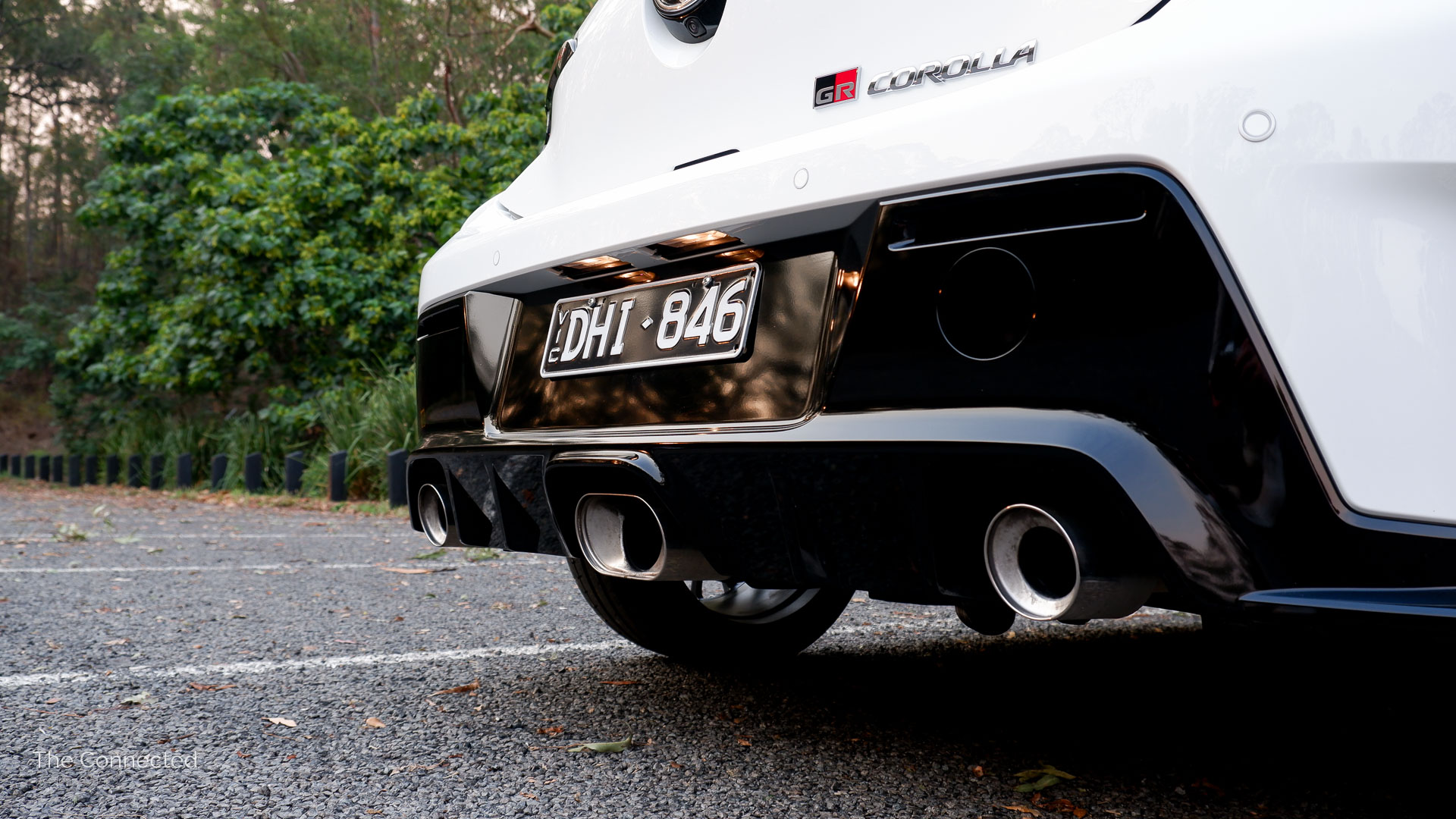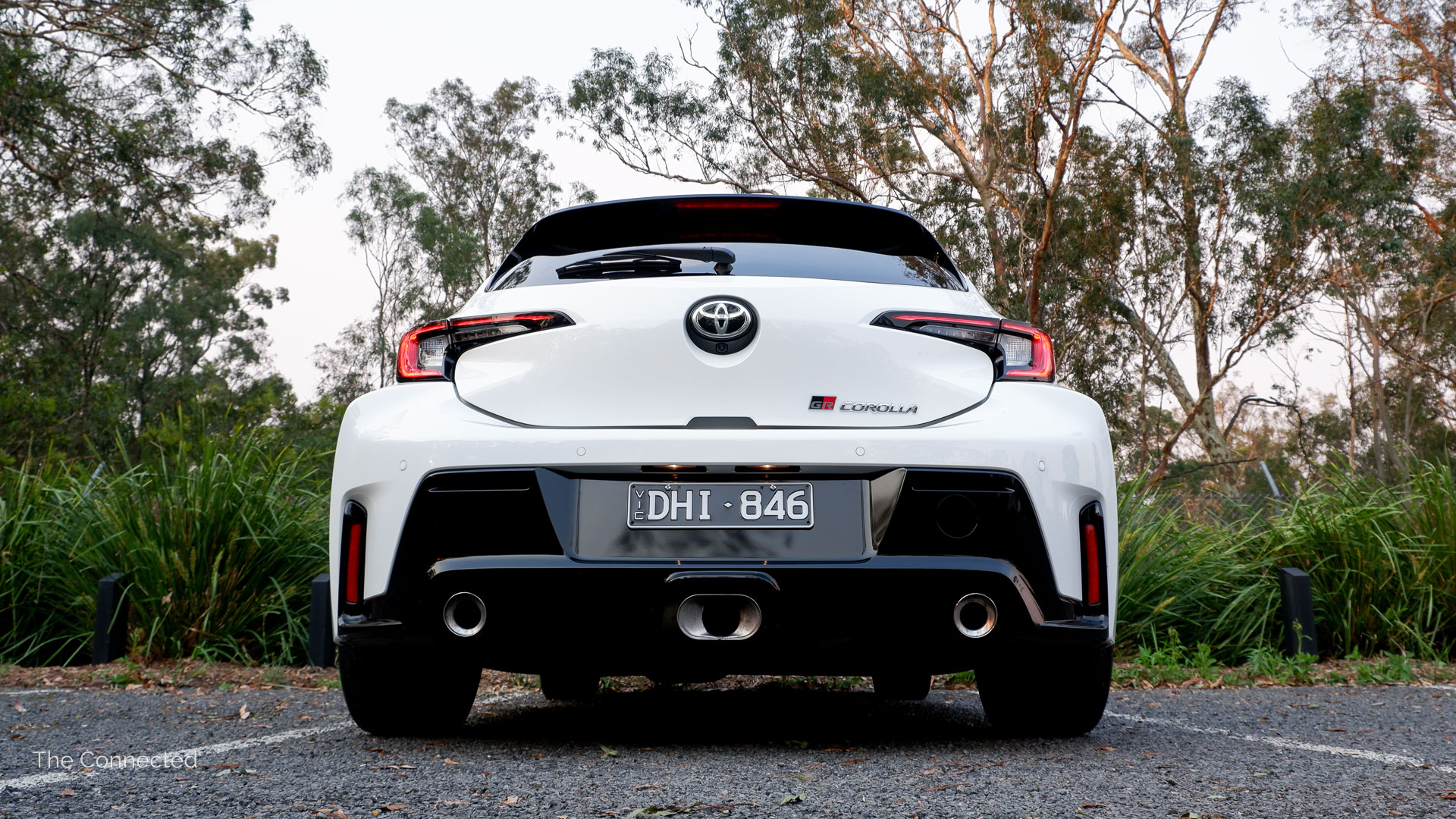 There’s a low and wide stance, the front LED daytime running lights are distinctive and double as turn indicators, and the triple rear exhausts (with a bigger one in the centre) hint that this is no ordinary Corolla.