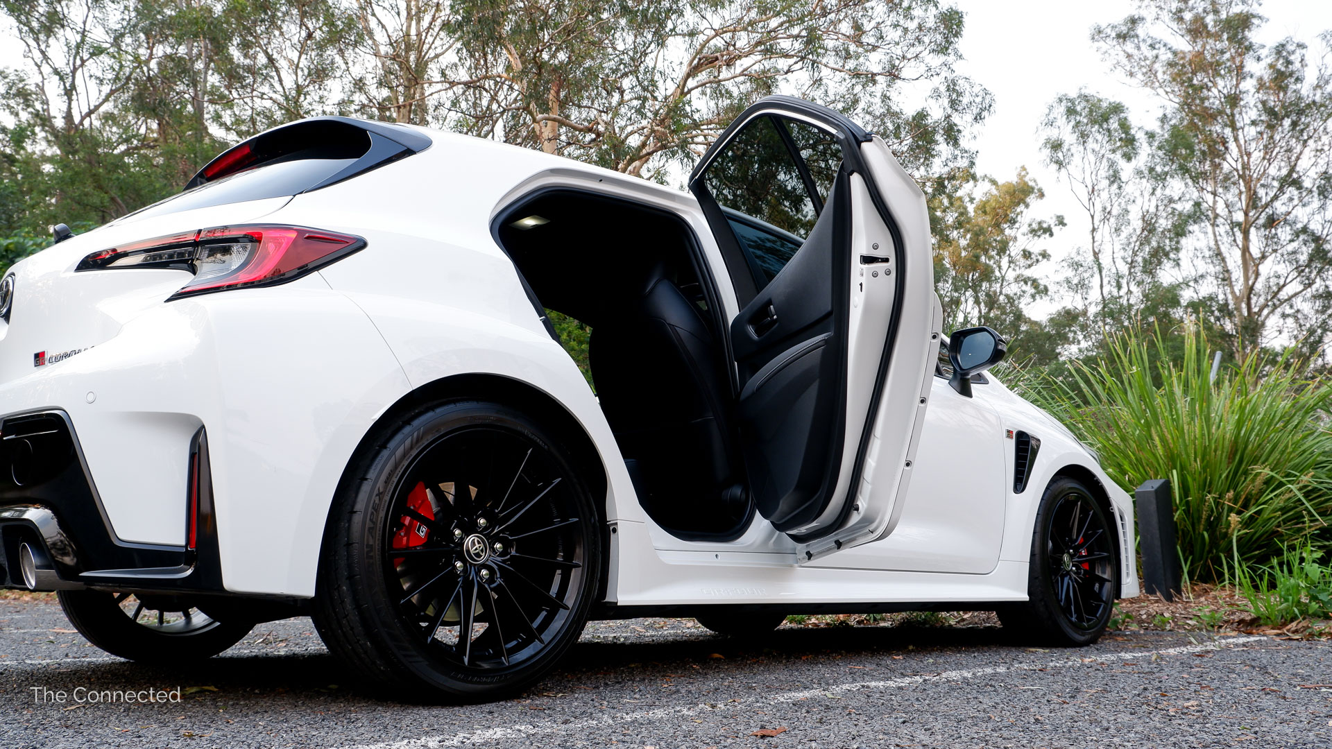 It’s worth noting that the 18-inch gloss black alloys stick out from the wheel and are susceptible to curb rash, unlike the smaller Toyota GR Yaris which is tucked in the rubber.