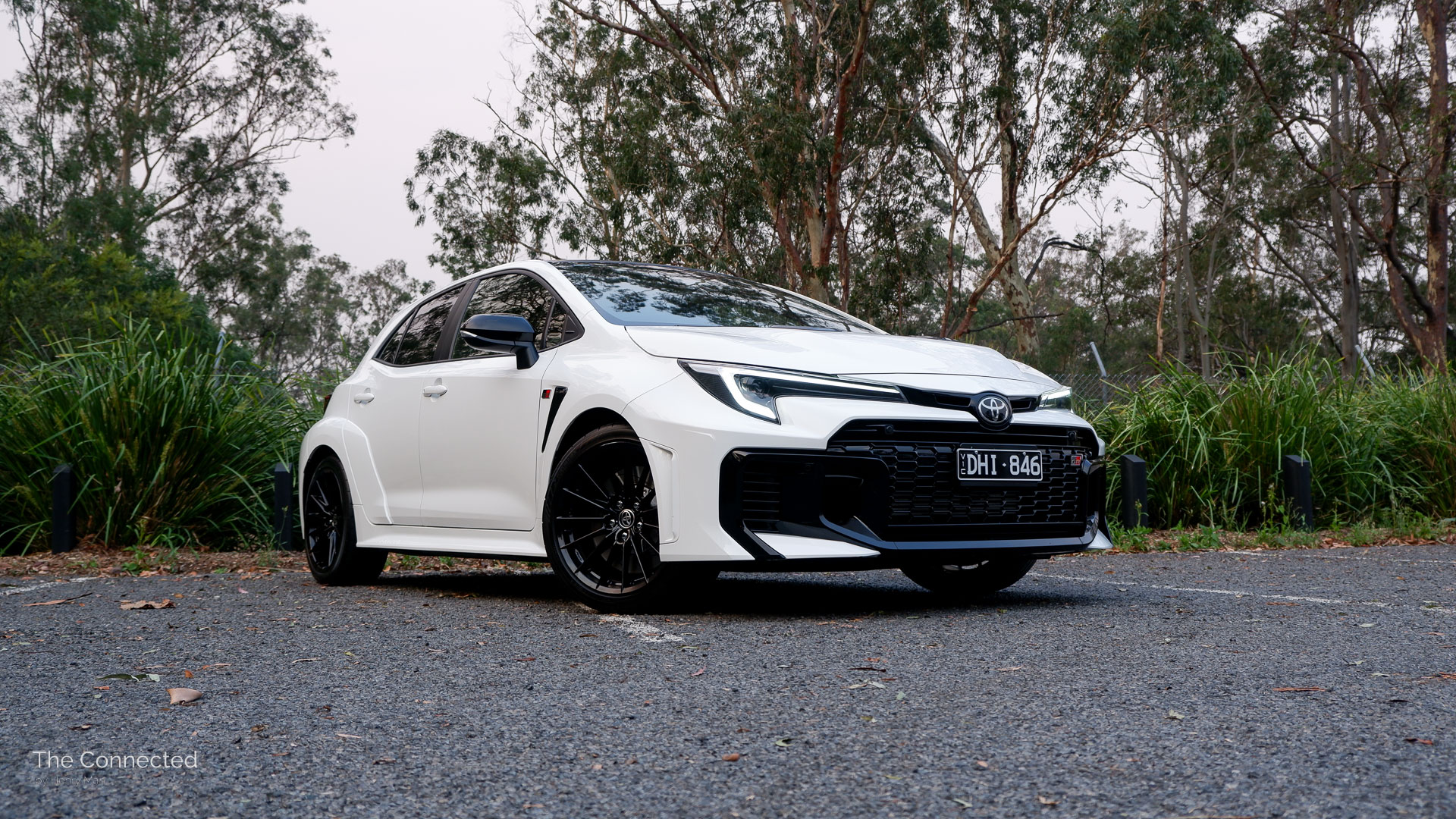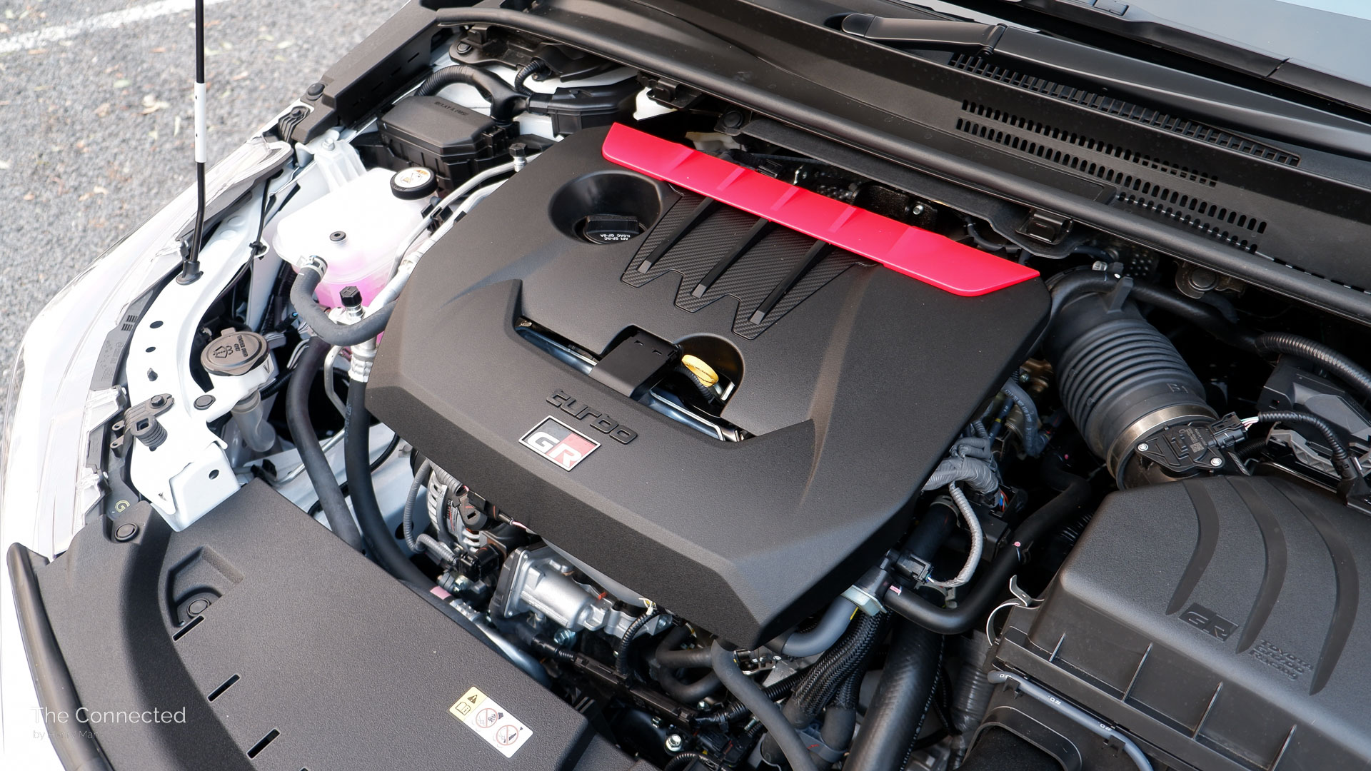 Keen eyes will spot the wider front and rear bumpers, an extended rear, flared wheel haunches, a forged carbon fibre roof skin, genuine bonnet and wheel vents, and gloss black wheels that differentiate the GR Corolla from conventional hybrid models.