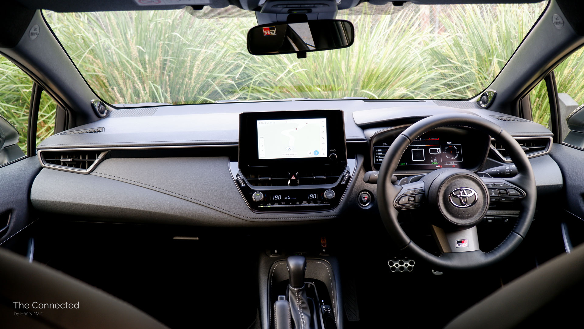 The standard head-up display clearly projects onto the windscreen with the speed readout, detected speed sign, selected gear, and adaptive cruise icons, even though it doesn’t offer height adjustment and there isn’t a unique GR theme to differentiate itself from other Toyotas.