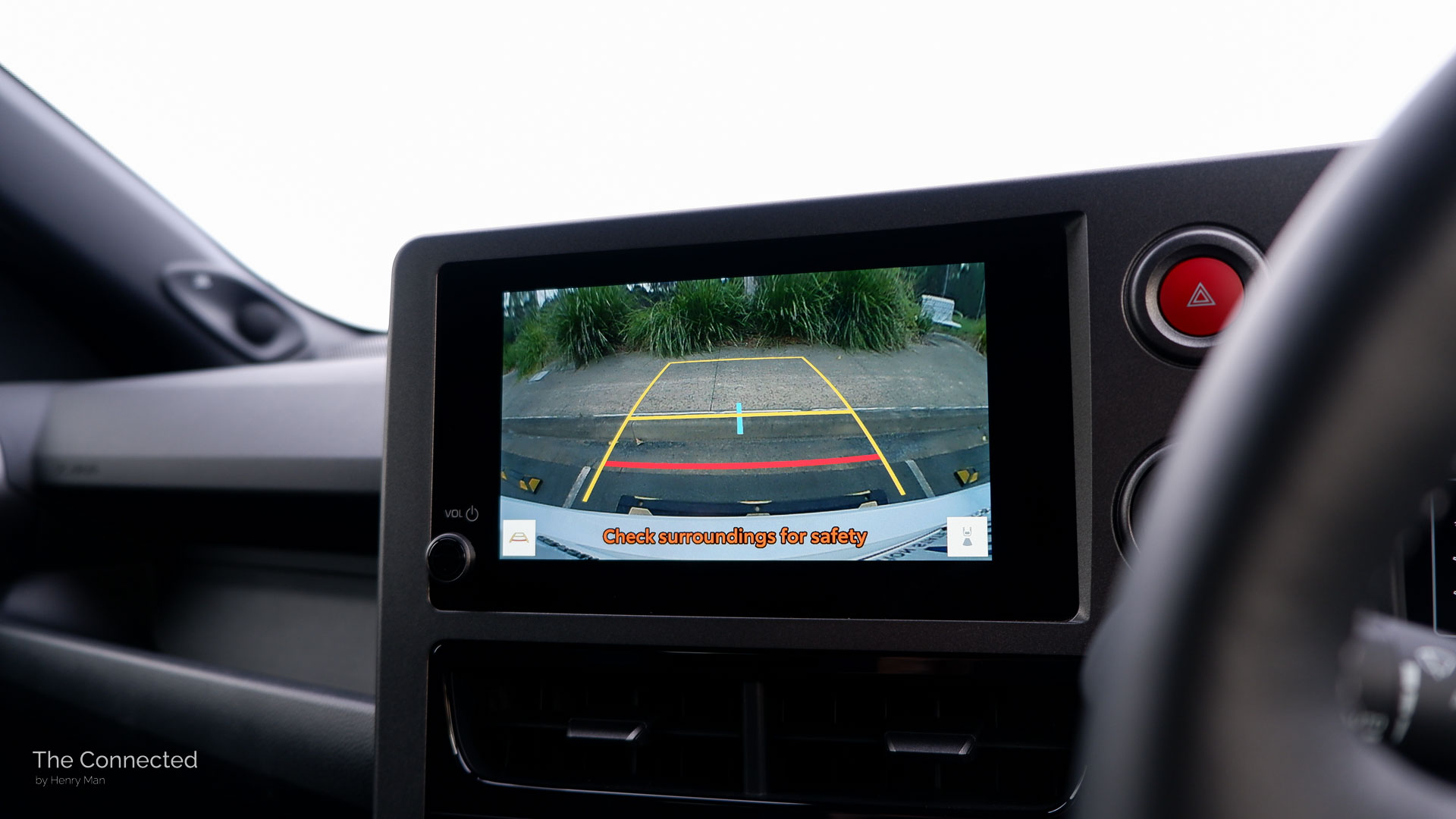 While it appears cheap and awkward in pictures, it looks quite unique in person with two large circular buttons for the engine start/stop and hazard lights, plus circular outer air vents.